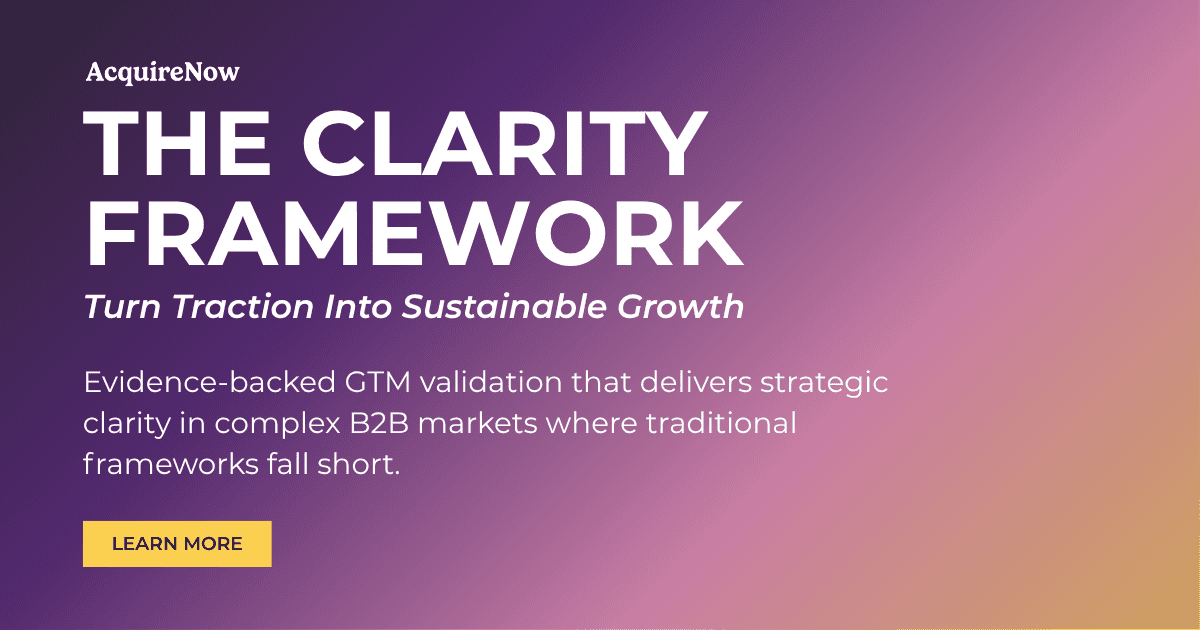 The Clarity Framework is AcquireNow's methodology developed over two decades for bridging the gap between founder hustle and repeatable revenue.